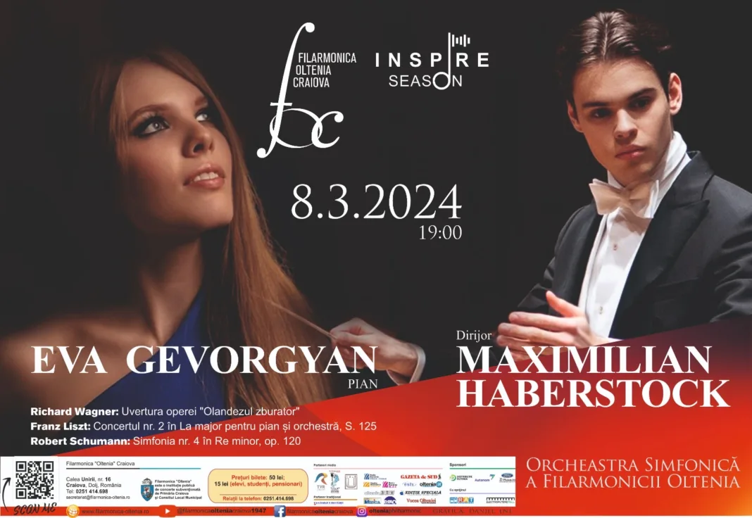 Publicul va fi invitat să se bucure de o seară memorabilă, unde muzica clasică se va împleti într-o armonie unică sub conducerea talentatului Maximilian Haberstock, cu prezența expresivă a solistei Eva Gevorgyan.