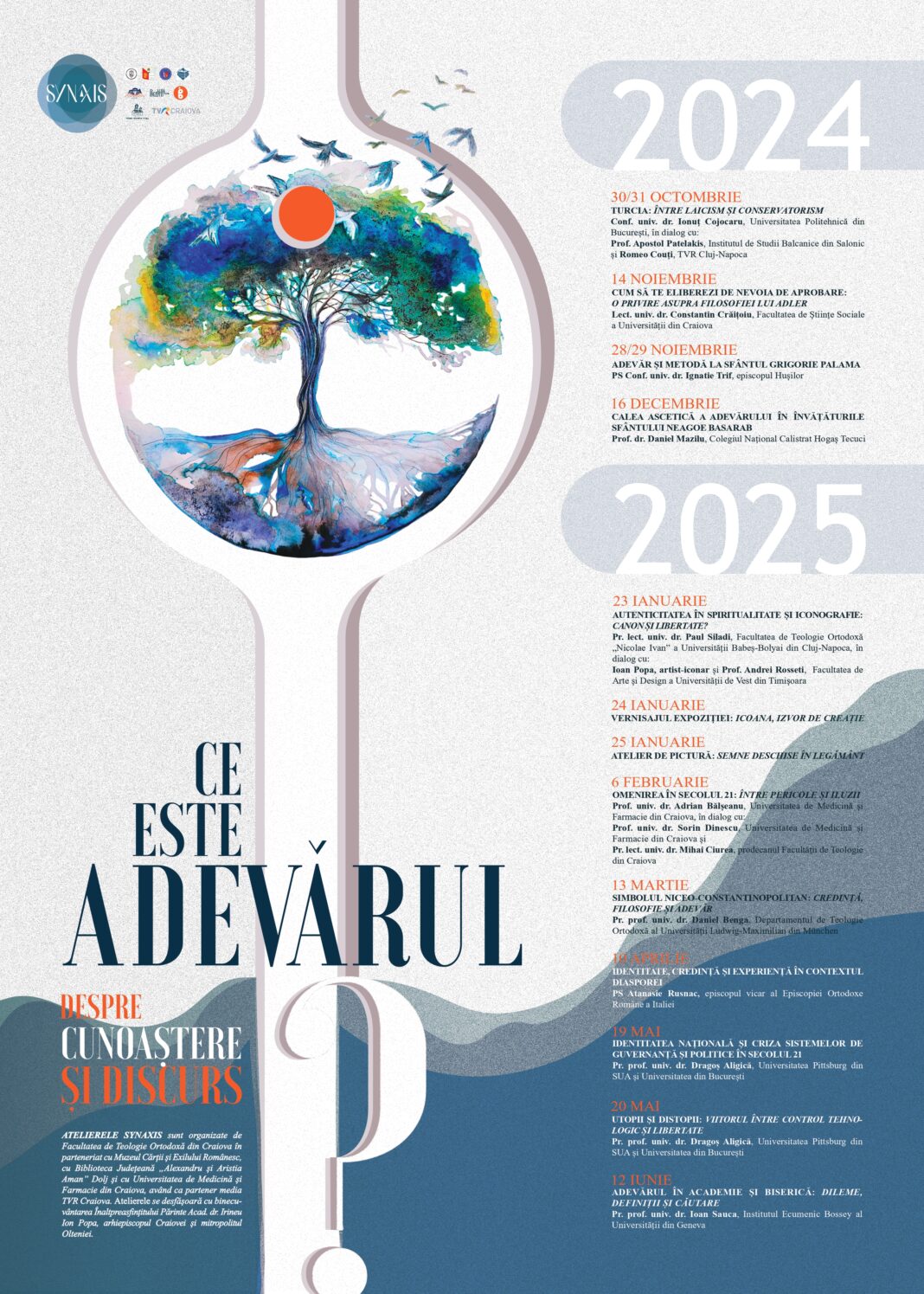 Facultatea de Teologie Ortodoxă din Craiova organizează, în anul universitar 2024-2025, a treia ediție a Atelierelor Synaxis. Se va desfășura sub genericul „Ce este adevărul? Despre cunoaștere și discurs”.