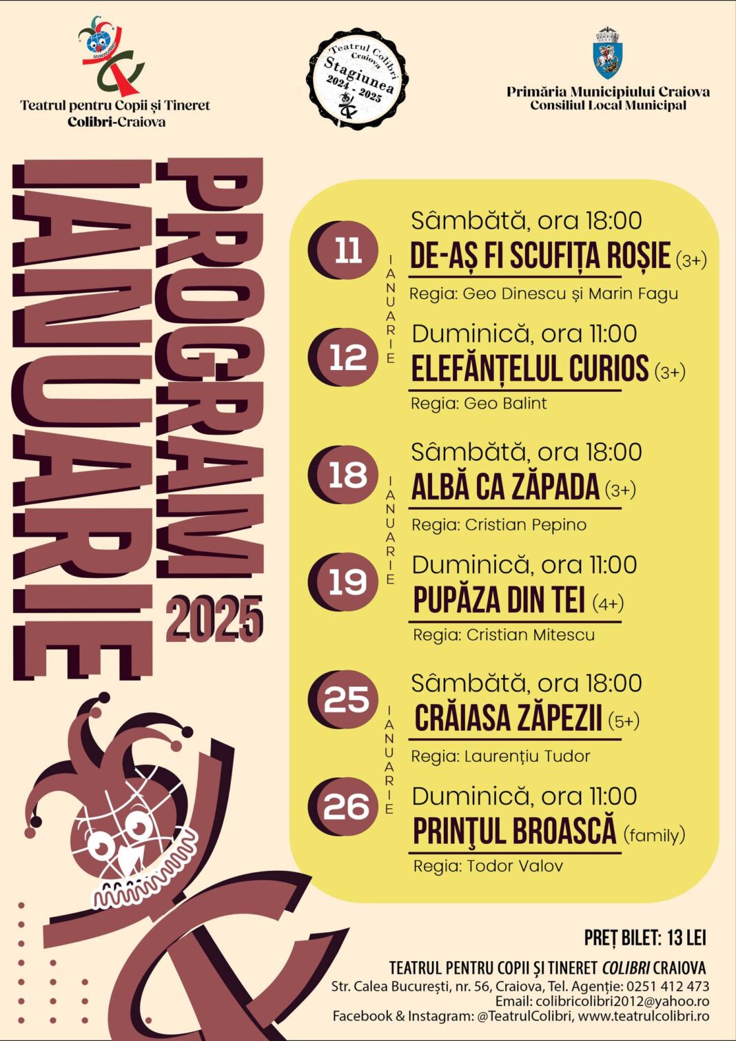 Teatrul pentru copii și tineret Colibri Craiova aduce la prima întâlnire cu publicul din noul an două spectacole vesele și pline de învățături.