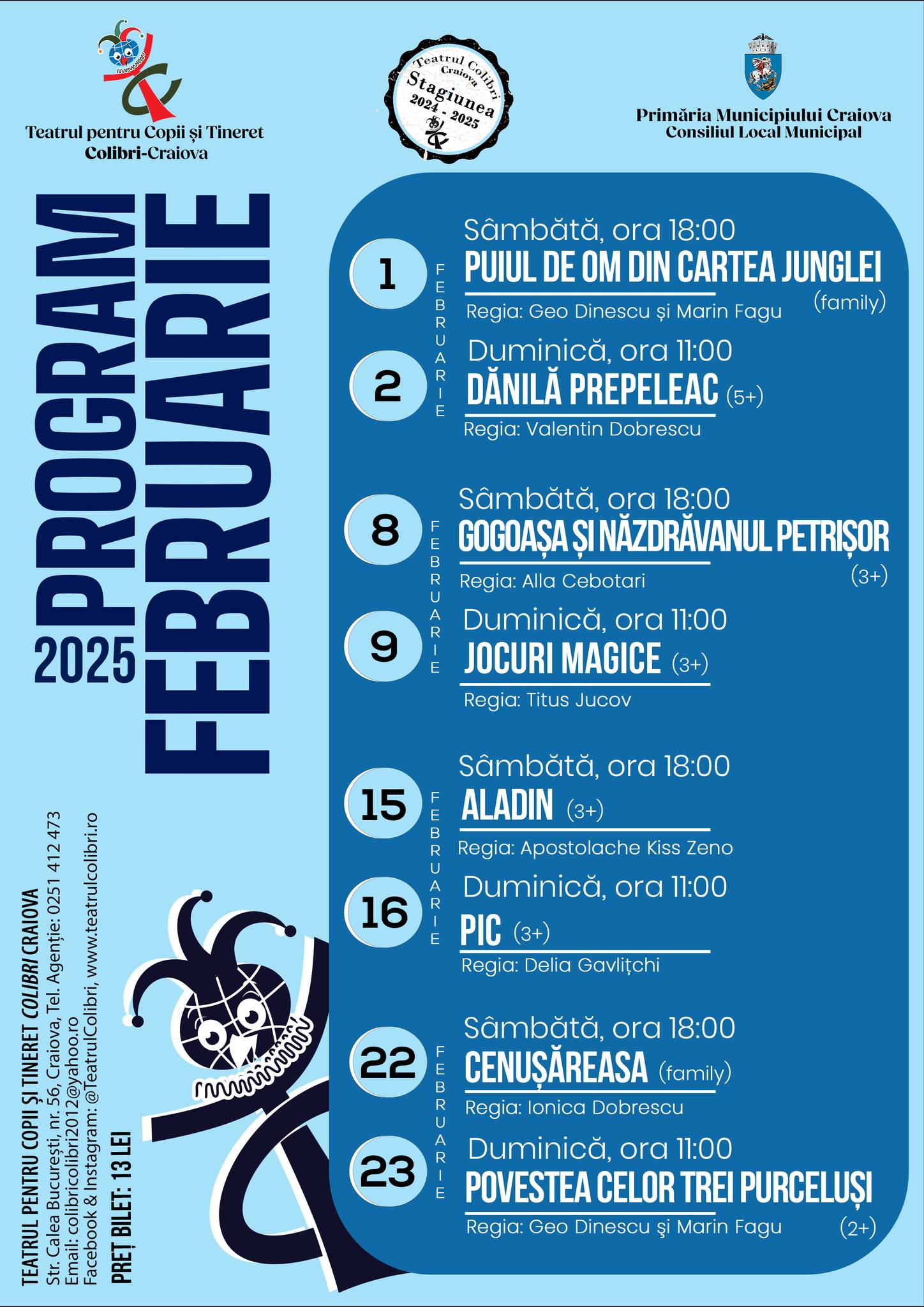 Teatrul Colibri Craiova prezintă în primul weekend din februarie spectacolele „Puiul de Om din Cartea Junglei“ și „Dănilă Prepeleac“.