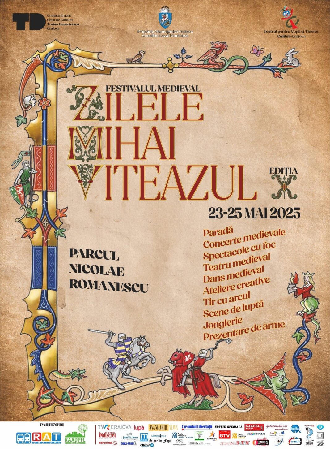 Teatrul Colibri Craiova deschide Festivalul Medieval „Zilele Mihai Viteazul“, la ora 19:00, cu o paradă a costumelor medievale, în Parcul „Nicolae Romanescu“. Parada va fi urmată de concert de muzică medievală și tradițională, iar la ora 21:00 de un frumos spectacol de jonglerie cu foc.