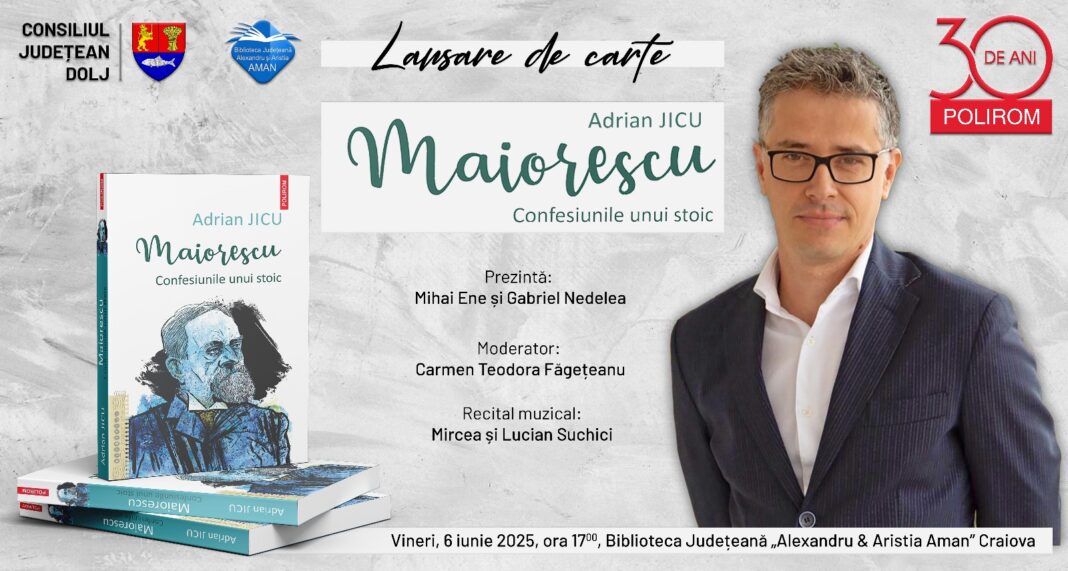 Biblioteca „Aman” găzduiește vineri, lansarea volumului „Maiorescu. Confesiunile unui stoic” autor Adrian Jicu.