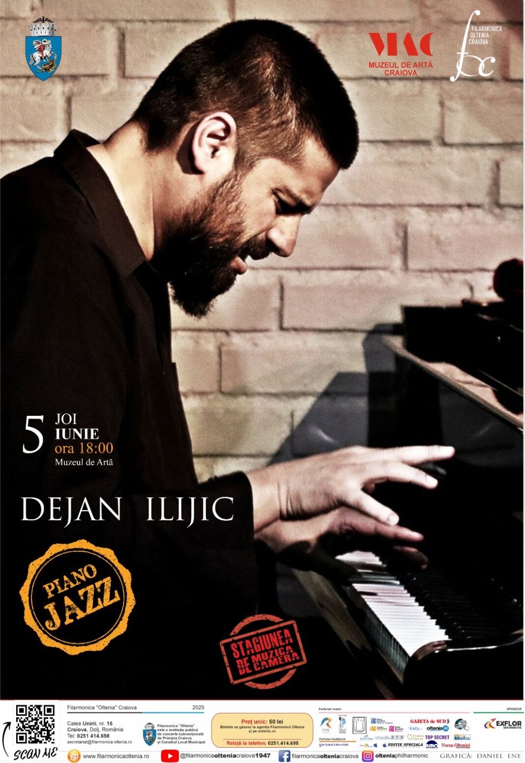 Joi, ora 18:00, la MUZEUL DE ARTĂ Craiova, pianistul și compozitorul sârb Dejan Ilijić, liderul formației EYOT, susține un recital solo de piano jazz. Artist cu o activitate internațională impresionantă, Dejan îmbină lirismul pianului cu modele ritmice complexe, specifice Balcanilor, aducând pe scenă un univers sonor emoționant și original.