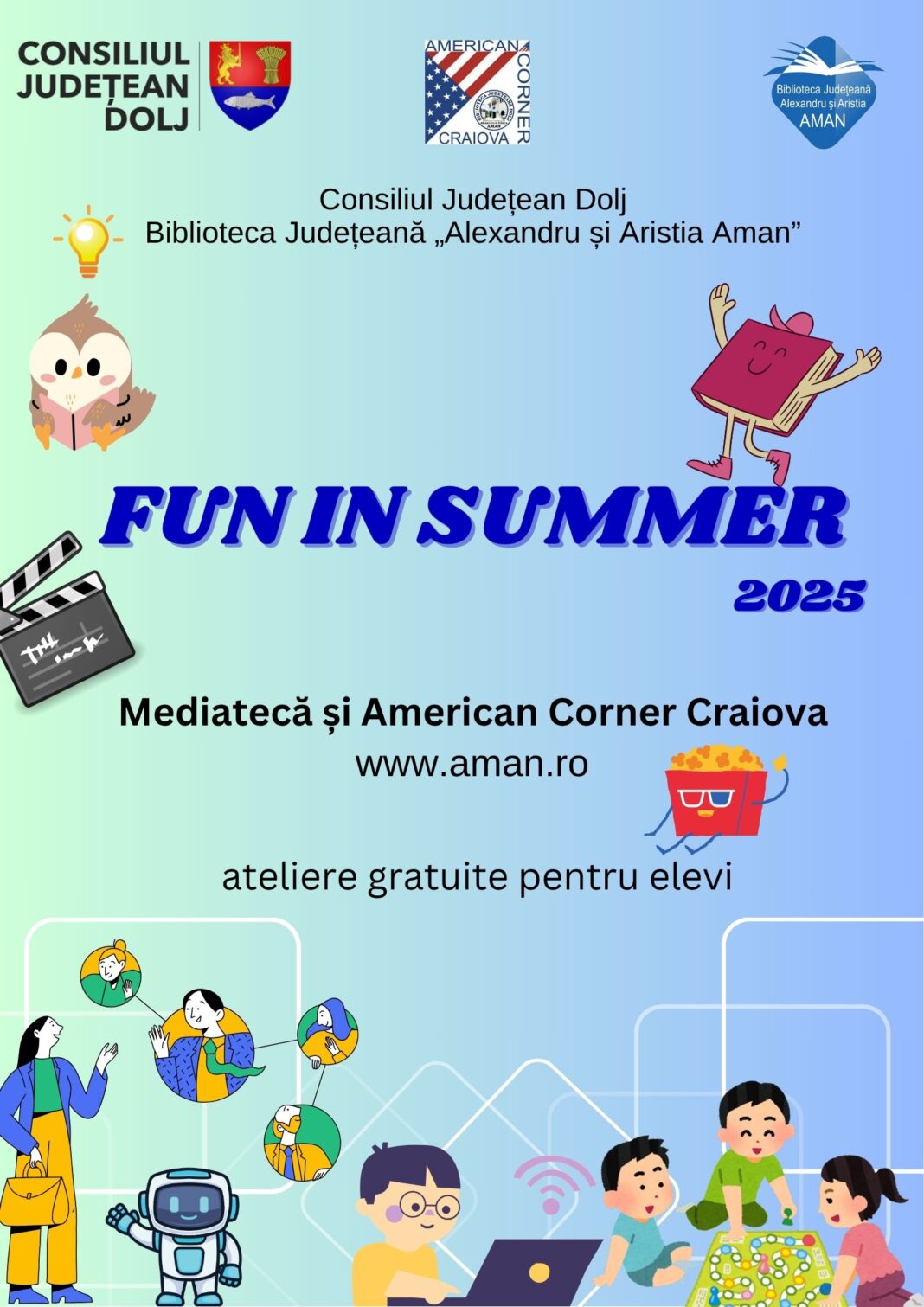 Biblioteca Județeană „Alexandru și Aristia Aman”, prin compartimentul Mediatecă și American Corner Craiova, continuă seria de activități gratuite, desfășurate în fiecare vară în cadrul programului Fun in Summer.