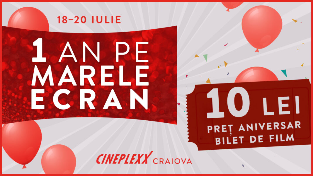 Te așteptăm să celebrăm împreună 1 an de cinema la Cineplexx Craiova!