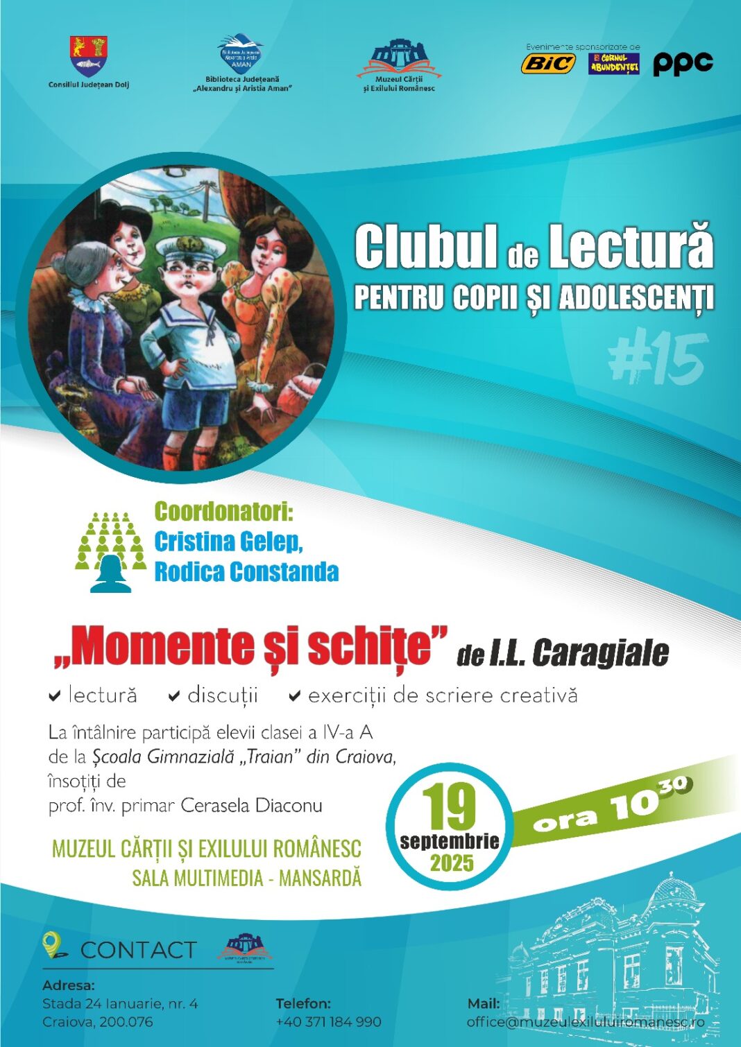Vineri, de la ora 10:30, Muzeul Cărții și Exilului Românesc devine gazda celei de-a cincisprezecea întâlniri a Clubului de lectură pentru copii și adolescenți. Este un proiect menit să cultive dragostea pentru literatură și să dezvolte gândirea critică a celor mici.