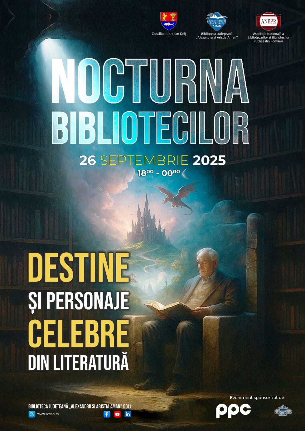 Biblioteca Județeană „Alexandru și Aristia Aman” își deschide porțile pentru cea de-a XVI-a ediție a evenimentului „Nocturna bibliotecilor – O noapte în bibliotecă”, organizat sub genericul „Destine și personaje celebre din literatură”.