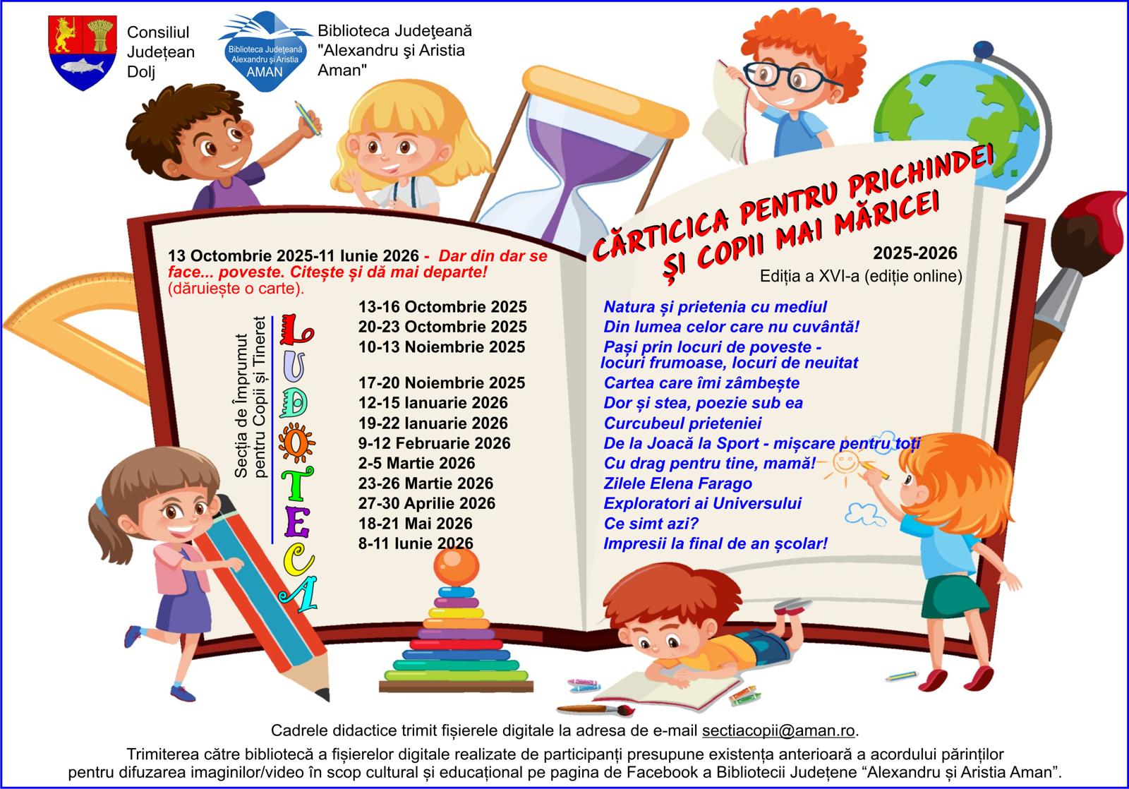 ● 13 octombrie 2025 – 11 Iunie 2026 – Dar din dar se face… poveste. Citește și dă mai departe! (dăruiește o carte).