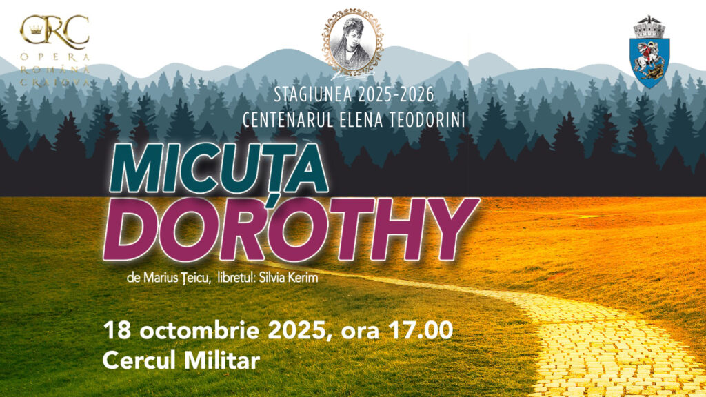 Sâmbătă, 18 octombrie, de la ora 17.00, tot la Cercul Militar, publicul este invitat să pătrundă în lumea plină de aventură a spectacolului „Micuța Dorothy”, musicalul pentru copii compus de Marius Țeicu, pe un libret de Silvia Kerim.