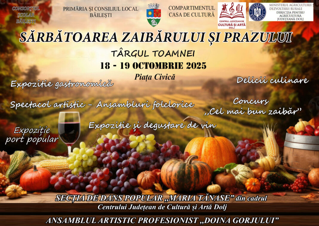 Primăria Municipiului Băilești, prin Compartimentul Casa de Cultură „Amza Pellea”, în parteneriat cu Centrul Județean de Cultură și Artă Dolj și Direcția pentru Agricultură Județeană Dolj, organizează în perioada 18–19 octombrie, în Piața Civică din Băilești, Sărbătoarea Zaibărului și a Prazului. Este un eveniment devenit simbol al identității și al spiritului autentic al oamenilor locului.