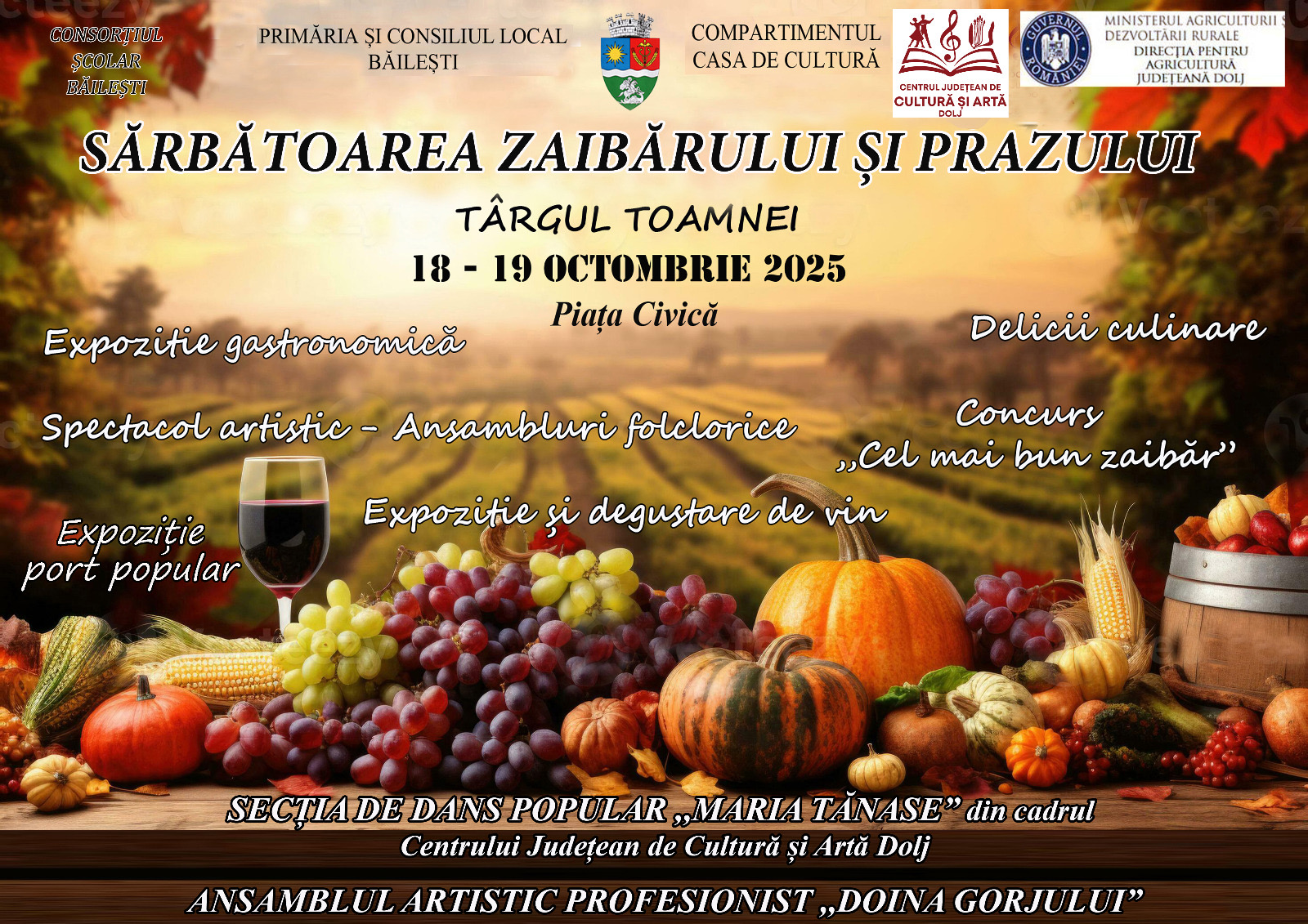 Duminică, 19 octombrie, va avea loc tradiționalul Concurs pentru „Cel mai bun zaibăr”, unde cei mai pricepuți producători din regiune își vor etala talentul. Juriul va premia calitatea, autenticitatea și gustul autentic oltenesc.