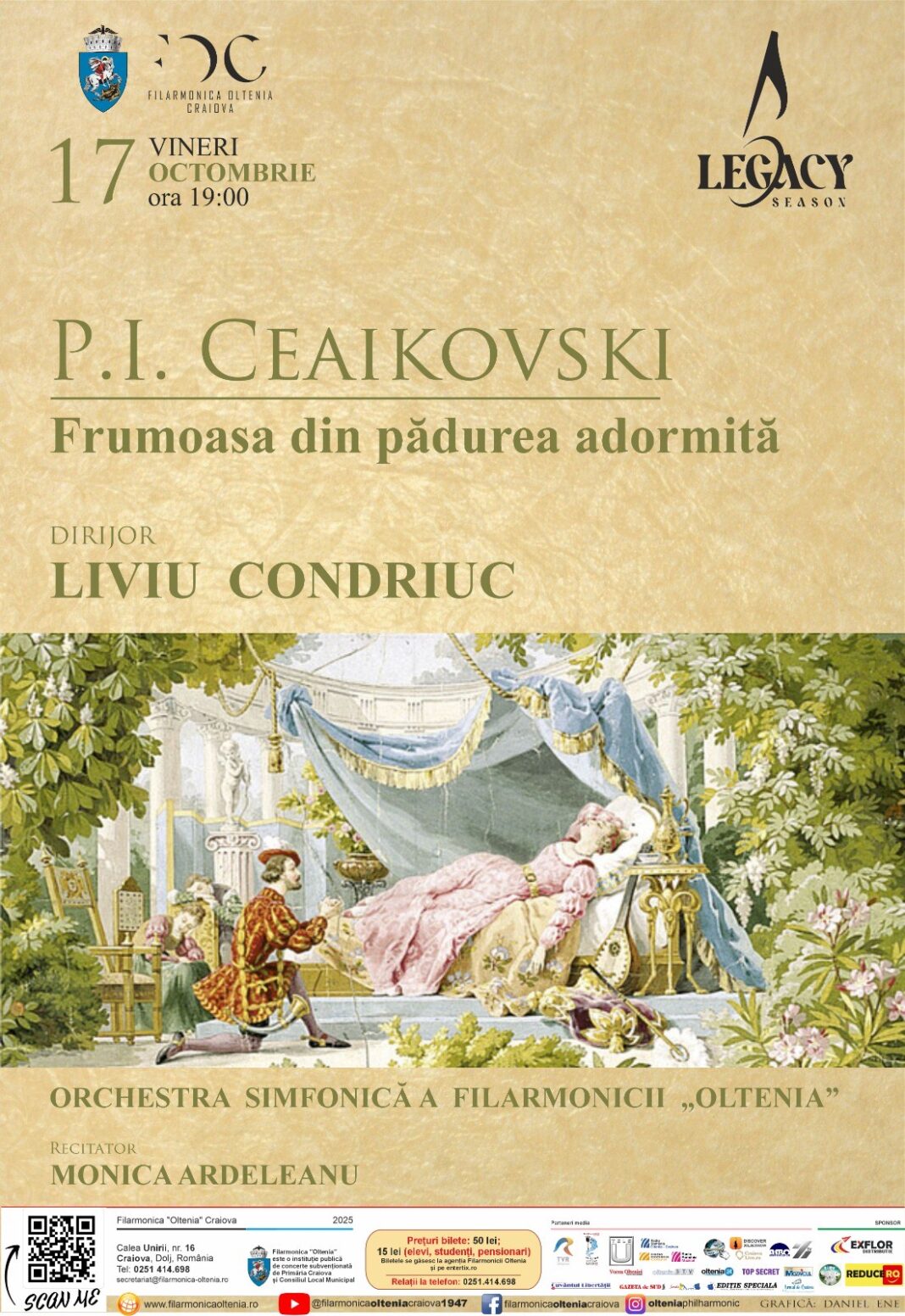 Astăzi, de la ora 19:00, Filarmonica „Oltenia” Craiova invită publicul la o seară de poveste. Orchestra simfonică a instituției va interpreta suita de balet „Frumoasa din pădurea adormită” de Piotr Ilici Ceaikovski, sub bagheta dirijorului Liviu Condriuc.