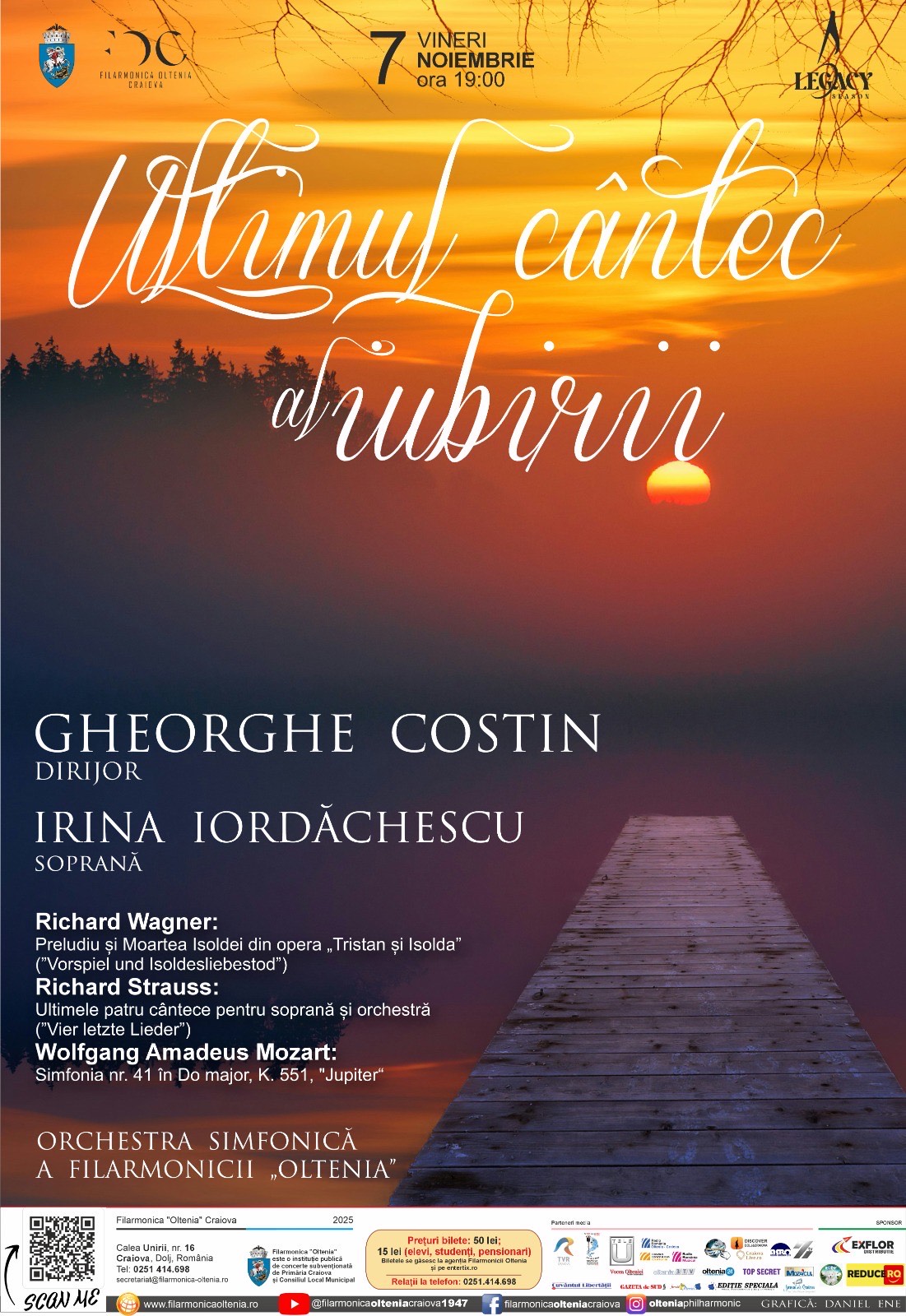Filarmonica „Oltenia” invită publicul craiovean la o seară de profunzime și rafinament sonor. Vineri, 7 noiembrie 2025, ora 19:00, orchestra simfonică a instituției va susține un concert vocal-simfonic sub bagheta maestrului Gheorghe Costin, având-o ca invitată pe distinsa soprană Irina Iordăchescu.