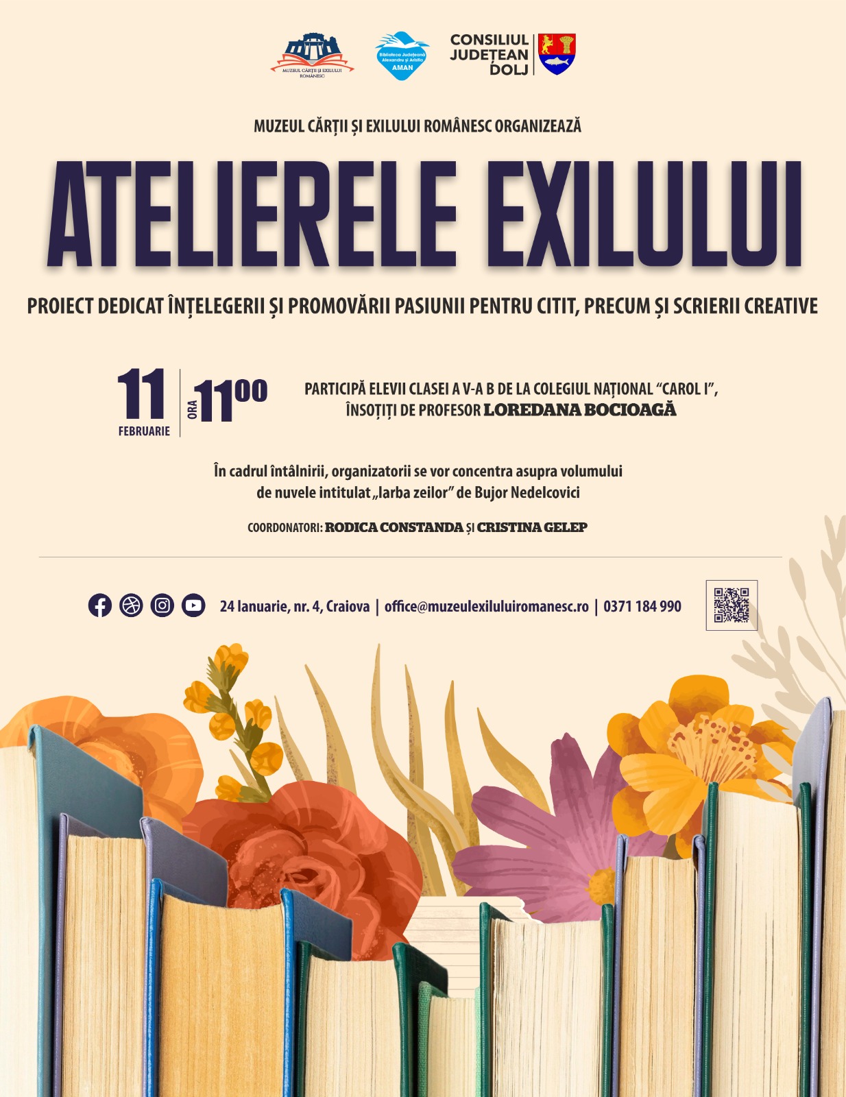 Muzeul Cărții și Exilului Românesc organizează miercuri, 11 februarie, la ora 11:00, prima întâlnire din cadrul proiectului „Atelierele exilului”, dedicat pasiunii pentru lectură și scriere creativă.