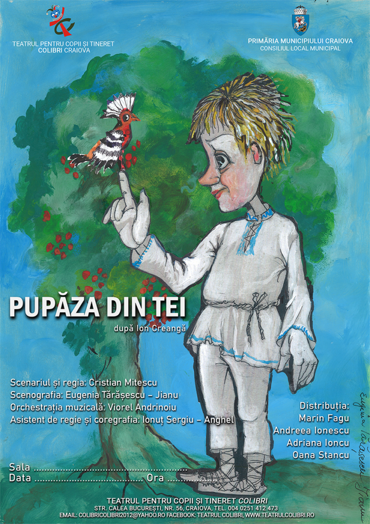 Sâmbătă, 7 martie 2026, de la ora 18:00, publicul este invitat la spectacolul „Pupăza din tei”, cu scenariul și regia semnate de Cristian Mitescu.