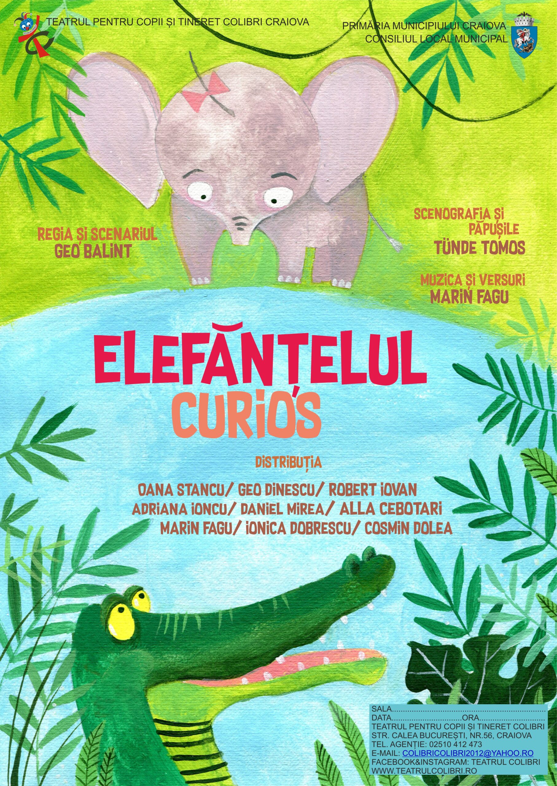 Sâmbătă, 14 martie 2026, de la ora 18:00, publicul este invitat la spectacolul „Elefănțelul curios”, adaptare după Rudyard Kipling.