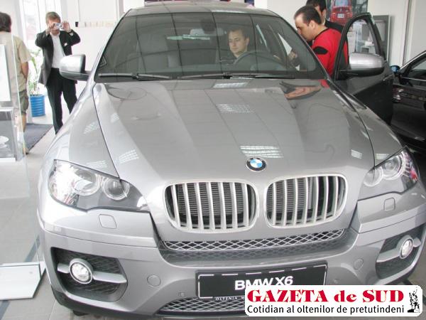 Prima unitate X6, noul şi nonconformistul model al mărcii bavareze, a fost prezentată oficial sâmbătă publicului din Bănie, în cadrul unui eveniment desfăşurat la sediul dealerului local BMW, Oltenia Motors. SAV-ul (Sports Activity Coupe), căci vorbim de un concept nou, se diferenţiază de „fratele“ X5 prin numărul de locuri, X6 primind numai patru pasageri în habitaclu, deşi este construit pe aceeaşi platformă. Din acest punct de vedere, se poate spune că X6 este primul SUV cu patru uşi. Liniile caroseriei aduc cu forma unui coupe, însă BMW l-a dotat pe acesta cu patru portiere. Modelul marchează un nou subsegment în domeniul auto. În privinţa motorizării, X6 are numai propulsoare cu dublă supraalimentare. Gama de propulsoare include un V8 pe benzină cu Twin Turbo (407 CP), altul în şase cilindri cu Twin Turbo (306 CP), un diesel în şase cilindri cu Variable Twin Turbo (286 CP) şi tot un diesel în şase cilindri cu supraalimentare, de 235 CP. Transmisia automată cu şase trepte şi dinamică optimizată este disponibilă la toate versiunile de motorizare.
