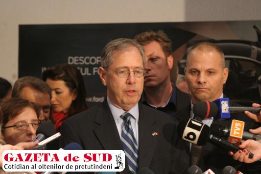 „Pe lângă investiţia Ford de la Craiova mai există şi alte investiţii americane în zonă, Johnson Controls şi IAC Group din Balş. Uzina Ford de la Craiova are 4.000 de angajaţi şi alţi 1.500-2.000 de oameni sunt angajaţi la furnizorii Ford. Capacitatea spre care tinde fabrica este de 1.000 de maşini/zi, fiind compatibilă cu orice fabrică din Statele Unite. Odată ce produci 1.000 de maşini/zi, trebuie să poţi şi să le expediezi pe piaţă la vânzare. De aceea discutăm cu primul-ministru să putem să livrăm aceste maşini în condiţii bune. Da, sunt optimist în ceea ce priveşte potenţialul Ford la Craiova“, a spus Mark Gitenstein.