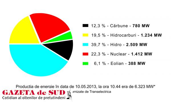 Vineri, în jurul orei 10.45, consumul de energie era în creştere. Potrivit situaţiei prezentate de Transelectrica în sistem real, la ora respectivă, doar 12,3% din energia din întregul sistem era produsă pe bază de cărbune, iar ponderea cea mai mare în România o avea energia realizată pe baza puterii apelor (39,7%) şi cea nucleară (22,3%). La ora respectivă, Transelectrica anunţa o energie eoliană care ocupa 6,1% din sistemul energetic naţional şi cea pe bază de hidrocarburi deţinea 19,5% din totalul energiei produse. Din producţia totală de 6.323 de MW, consumul era de 6.042, iar restul se exporta. Energia produsă pe bază de cărbune era de 780 MW, din care numai în jur de 200 au fost luaţi de la Complexul Energetic Oltenia, portivit unor surse, în timp ce restul erau de la Hunedoara, deşi acolo se produce cea mai scumpă energie din ţară.