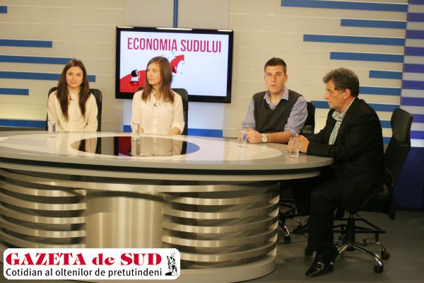 În prima parte a emisiunii „Economia Sudului“, elevele Maria Ilie şi Anca Niţă, de la Colegiul Naţional (CN) „Nicolae Titulescu“, şi-au înfruntat ideea de afaceri cu cea propusă de echipa coordonată de profesorul Vasile Voinescu şi din partea căreia a participat elevul Alexandru Ioana, de la Colegiul Naţional „Ştefan Velovan“.