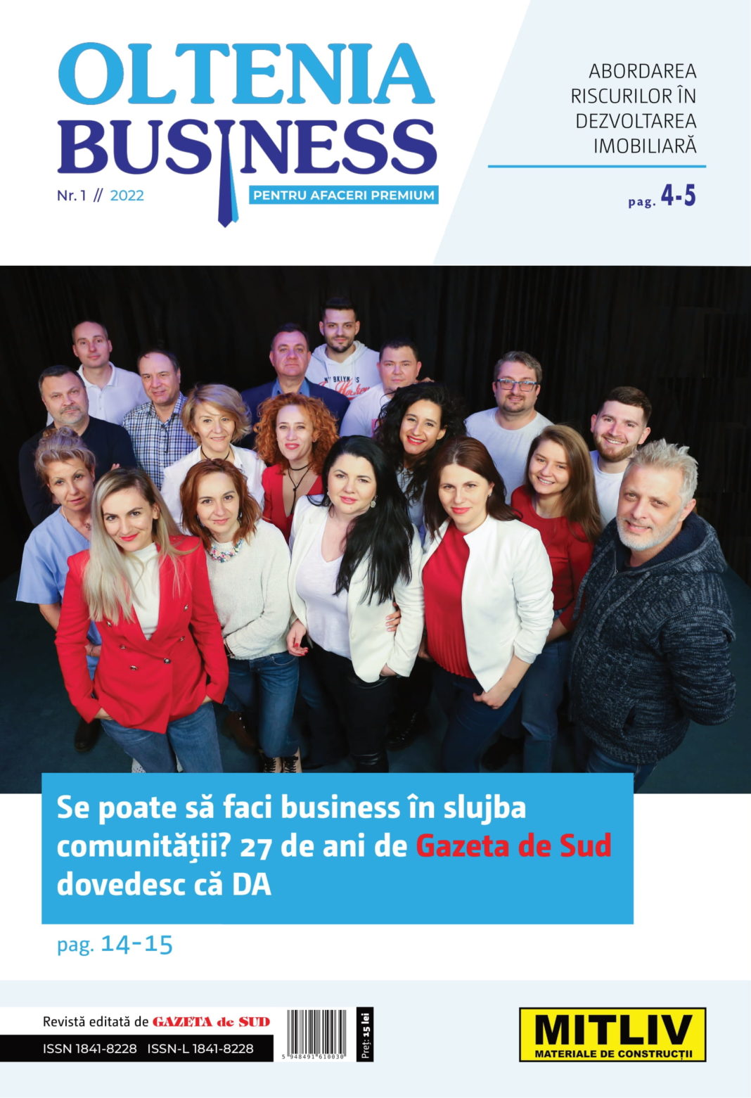 Anul 2022 vine cu un nou suflu în presa economică. Revista Oltenia Business, singura revistă cu profil economic din sud-vestul ţării, revine în format print şi online, cu apariţie trimestrială. Publicaţia editată de Gazeta de Sud cartografiază afacerile premium din Oltenia şi face cunoscute poveştile de succes ale antreprenorilor din zonă şi ale marilor investitori.