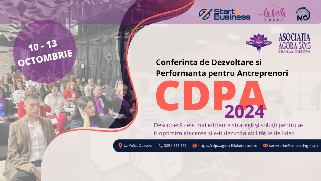 Asociaţia Agora, filiala Dubova, iniţiatoarea CDPA, propune un eveniment intensiv de 3 zile, destinat antreprenorilor și profesioniștilor independenți care doresc să-și dezvolte afacerea și să-și extindă rețeaua de contacte. Într-un cadru spectaculos, La Vella Resort & Spa Dubova, pe malul Dunării, participanţii vor avea ocazia să descopere secretele succesului de la experți de top, să participe la ateliere practice și să exploreze noi oportunități de finanțare și colaborare.