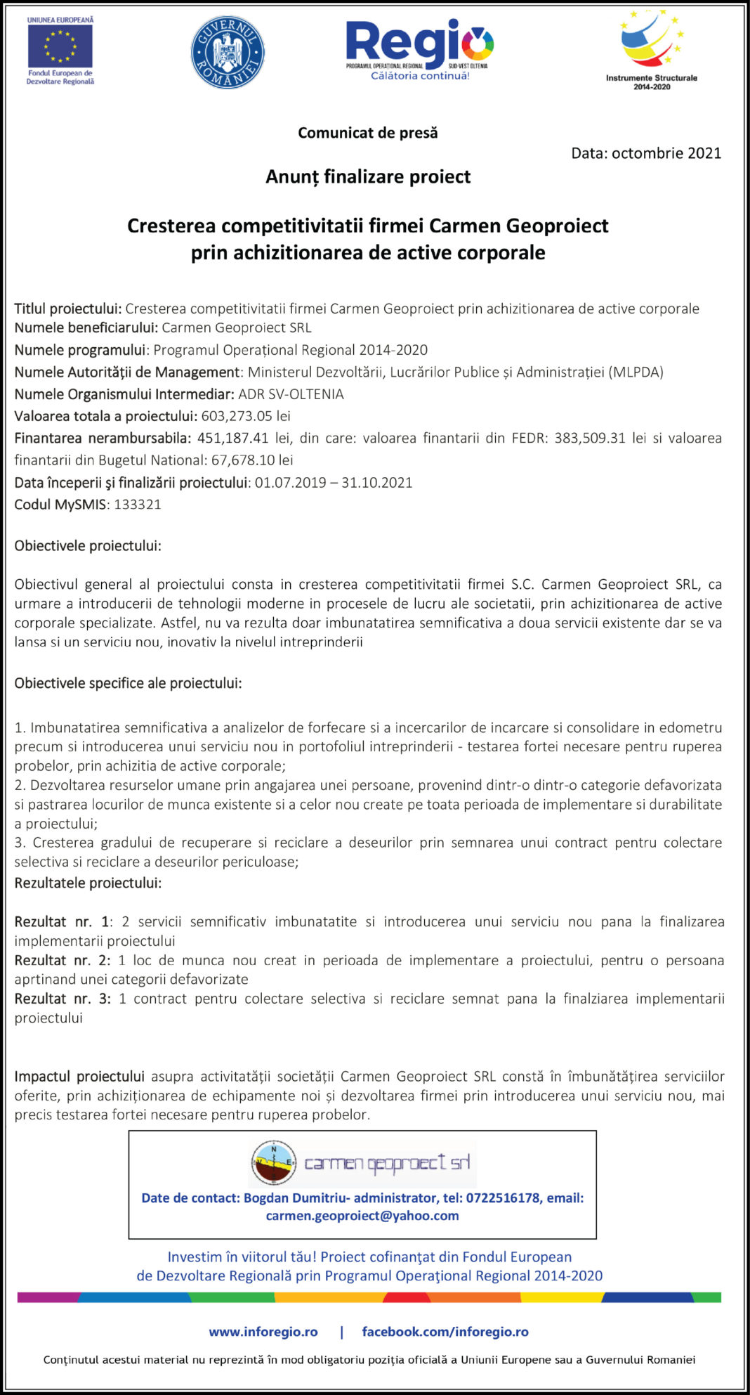 Date de contact Carmen Geoproiect SRL: Bogdan Dumitriu – Administrator Telefon: 0722516178, e-mail: [email protected]