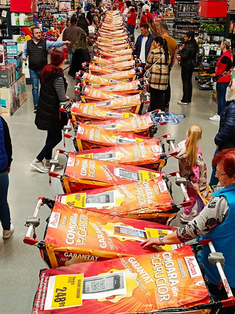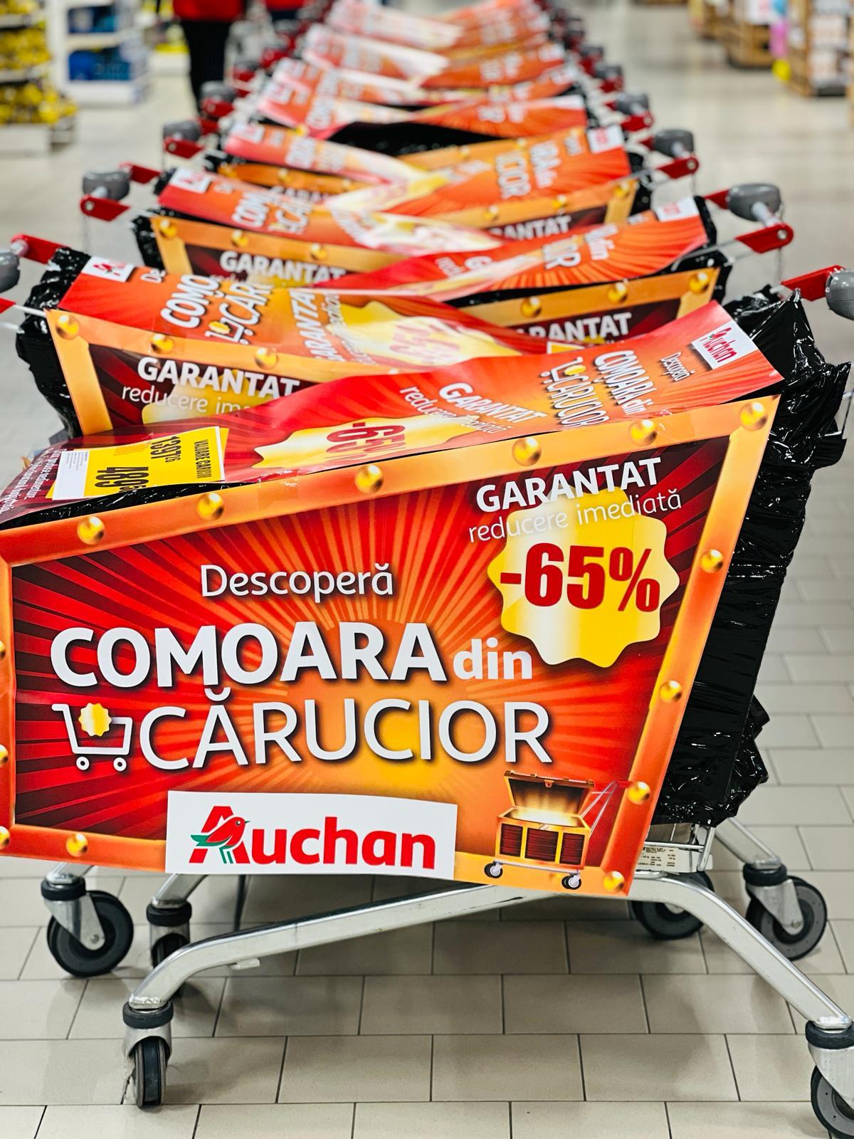 Cărucioarele surpriză cu -65% reducere garantată, o nouă ediție națională în 26 de hipermarketuri Auchan. Primele 10 magazine, în Sold Out în mai puțin de o oră.