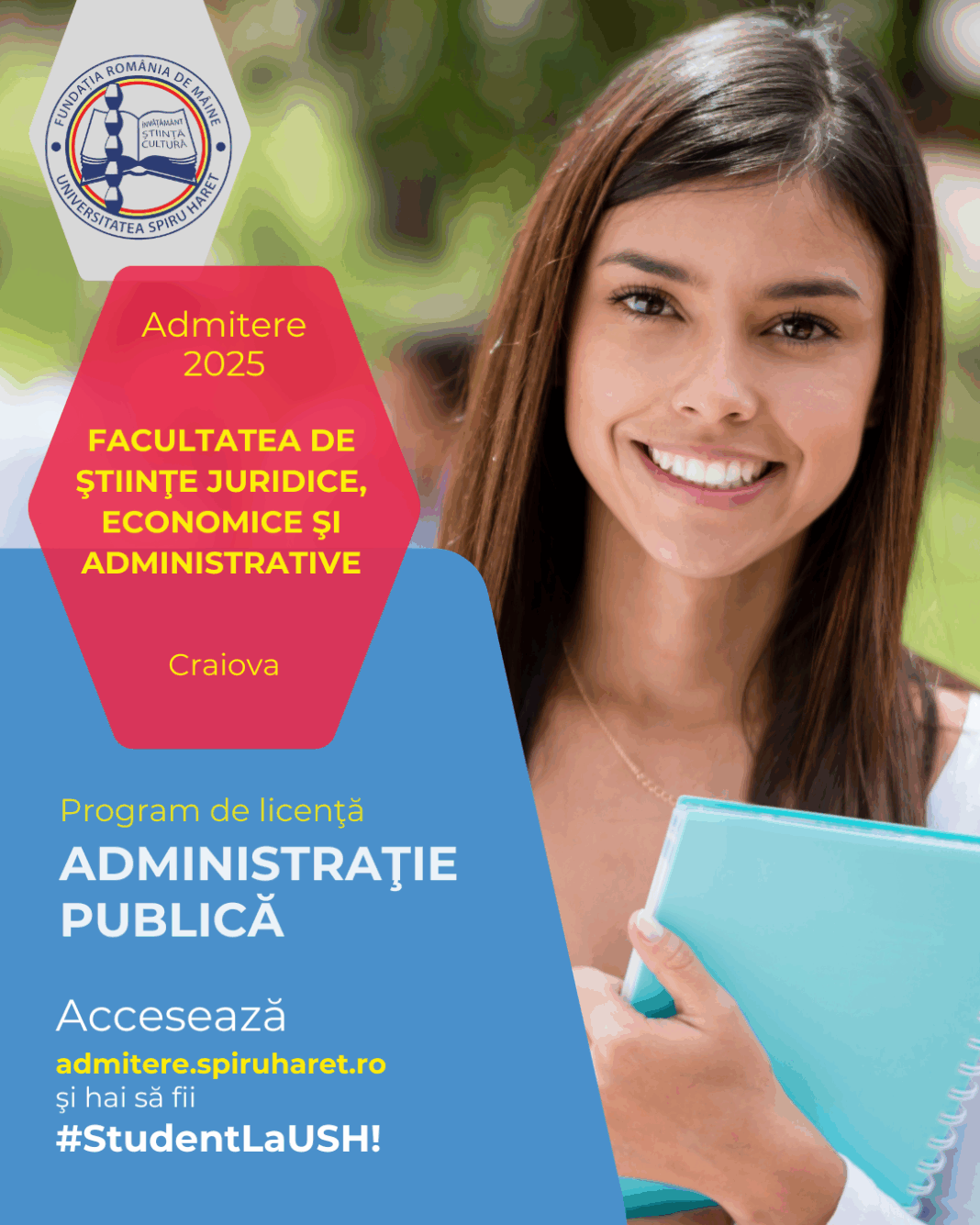 Până la data de 30 septembrie, Facultatea de Științe Juridice, Economice și Administrative din Craiova a Universităţii Spiru Haret are deschisă admiterea pentru anul universitar 2025 – 2026.