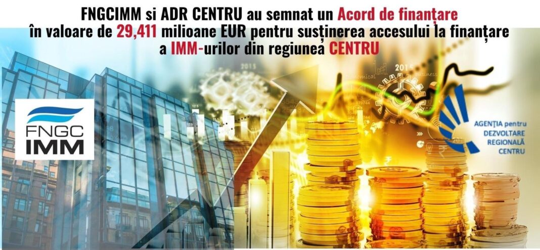 Agenția pentru Dezvoltare Regională Centru (ADR Centru), în calitate de Autoritate de Management pentru Programul „Regiunea Centru” 2021-2027, împreună cu Fondul Național de Garantare a Creditelor pentru Întreprinderile Mici și Mijlocii (FNGCIMM SA-IFN), anunță semnarea Acordului de finanțare în vederea implementării unui instrument financiar în valoare de peste 29 milioane euro, de tip garanție plafonată combinată cu grant, finanțat din Programul Regiunea Centru 2021 – 2027, pentru susținerea investițiilor IMM-urilor din Regiunea Centru.
