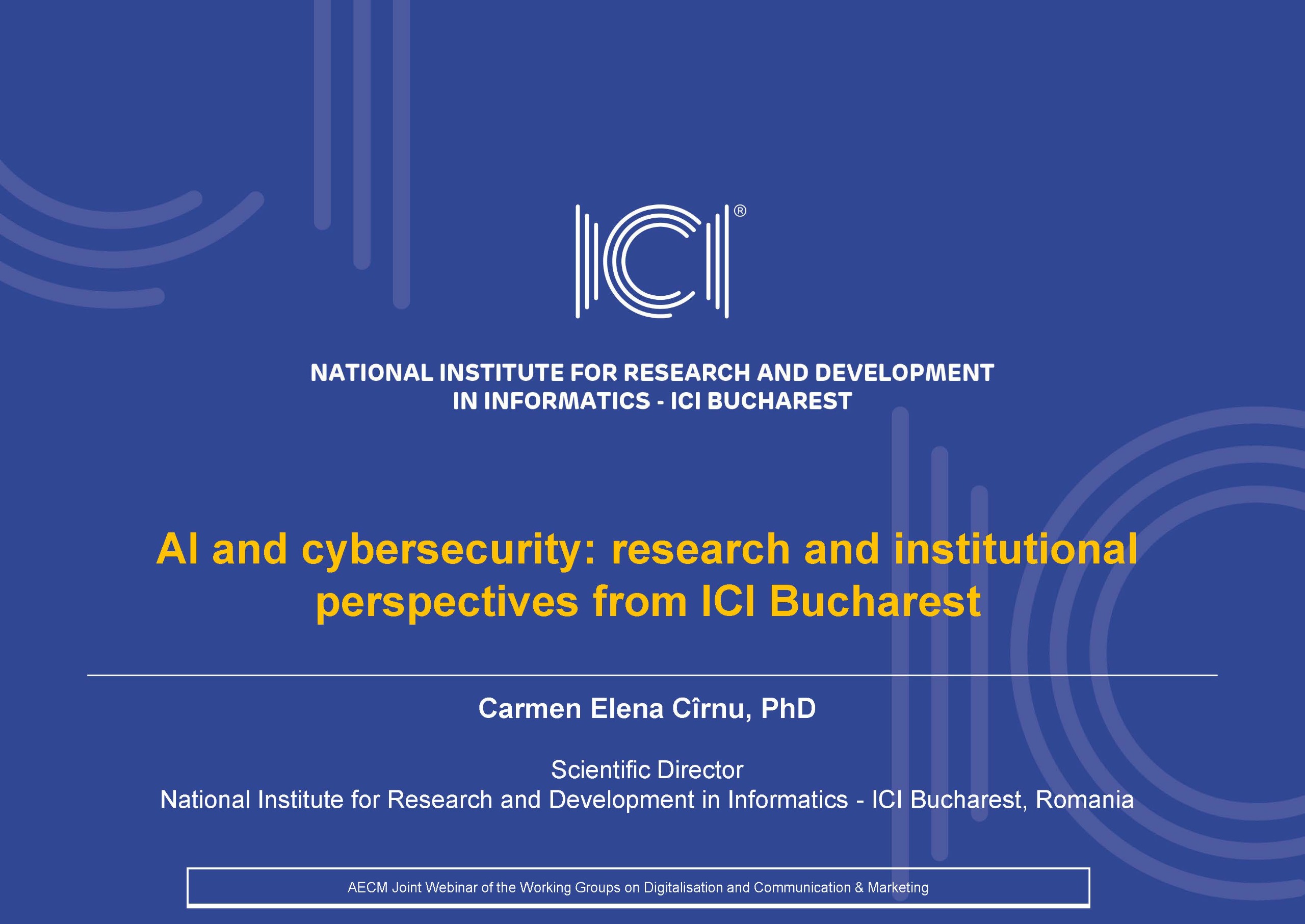 Din partea României, au fost invitați să participe la dezbateri și reprezentanții Institutului Național de Cercetare-Dezvoltare în Informatică – ICI București, prin directorul general, dr. ing.Adrian Vevera, iar doamna dr. Carmen Elena Cîrnu, Director Științific, a susținut o prezentare cu tema „IA și securitatea cibernetică: perspective de cercetare și instituționale”.