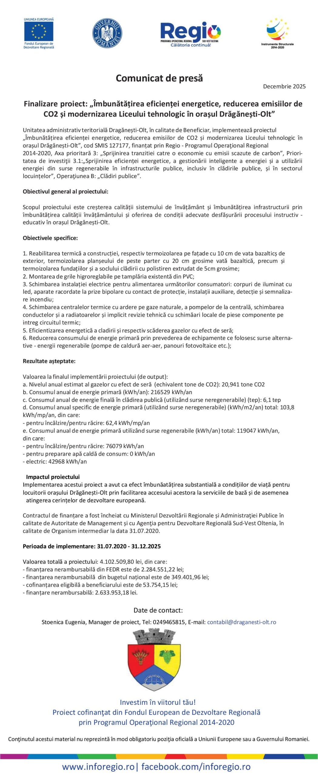 Stoenica Eugenia, Manager de proiect, Tel: 0249465815, E-mail: [email protected]