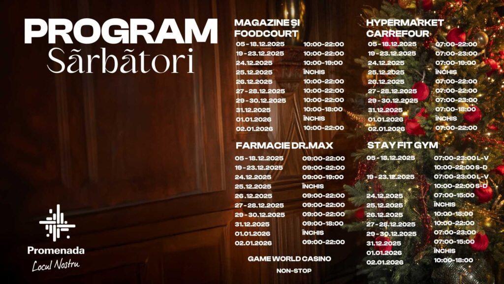 - 19-23.12.2025 : 07:00-23:00 L-V și 10:00-22:00 S-D