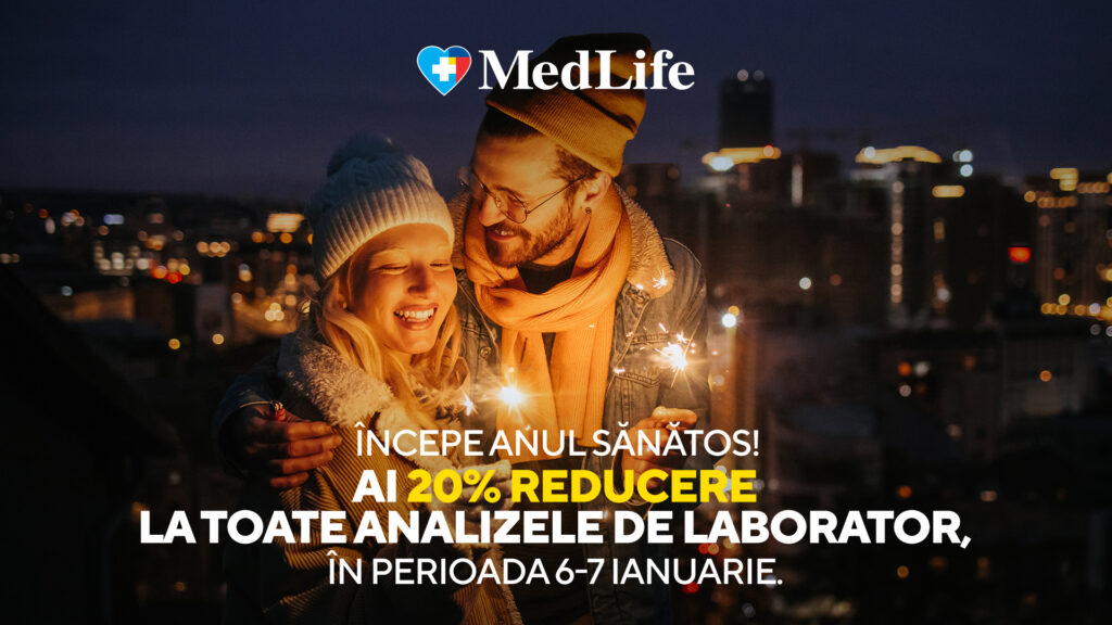 MedLife vine în sprijinul tău cu o reducere de 20% la toate tipurile de analize, indiferent de complexitate, această ofertă fiind disponibilă în toate punctele de recoltare MedLife din țară în perioada: 23–24 decembrie 2025 și 30–31 decembrie 2025, dar și în 6–7 ianuarie 2026.