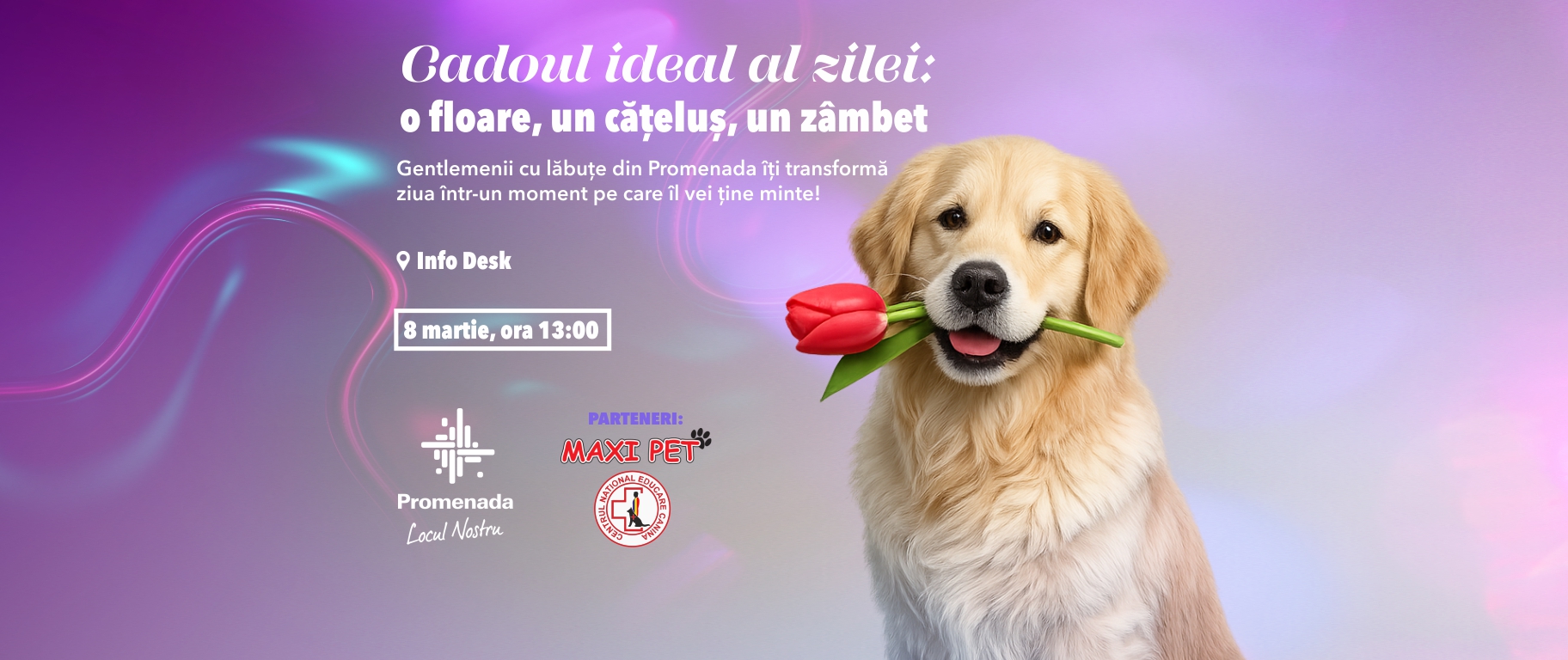 În plus, 8 Martie aduce și activități inedite pentru iubitorii de câini. Începând cu ora 13:00, alături de Centrul Național de Educare Canină (CNEC), vizitatoarele vor primi flori oferite într-un mod special: prin intermediul cățeilor prezenți. Inițiativa marchează și primul eveniment din 2026 în care specialiștii CNEC și companionii lor patrupezi sunt prezenți la Promenada Craiova, cu demonstrații și sesiuni de Q&A despre comportamentul canin. Evenimentul se desfășoară cu sprijinul partenerilor Maxi Pet.