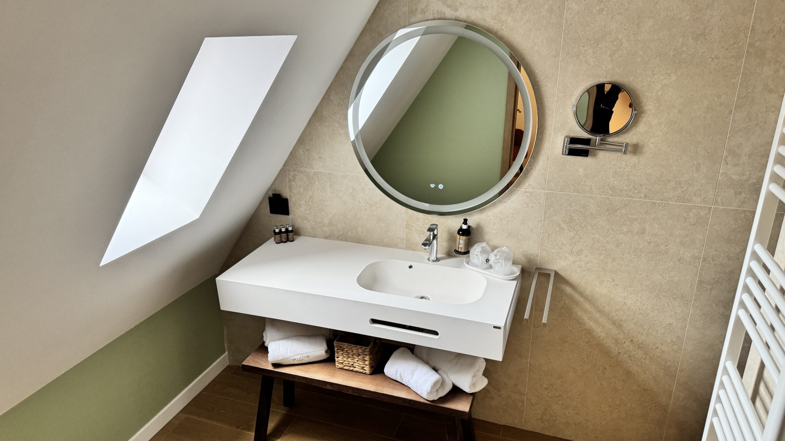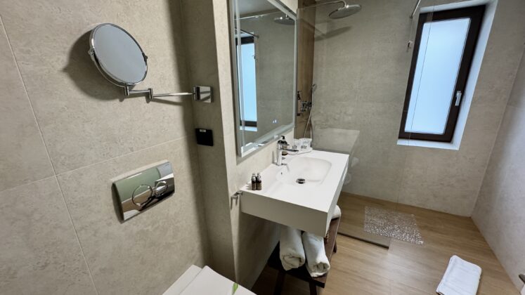 Băile de la Hotel Valedor Boutique & Spa din Bușteni sunt amenajate modern, punând accent pe confort, funcționalitate și rafinament, în ton cu standardele unui hotel de patru stele. Fiecare baie dispune de cabină de duș spațioasă, uscător de păr, prosoape pufoase și toate accesoriile necesare pentru o ședere relaxantă, oferind o atmosferă intimă și elegantă, potrivită atât pentru momentele de răsfăț personal, cât și pentru relaxarea după o zi activă la munte.