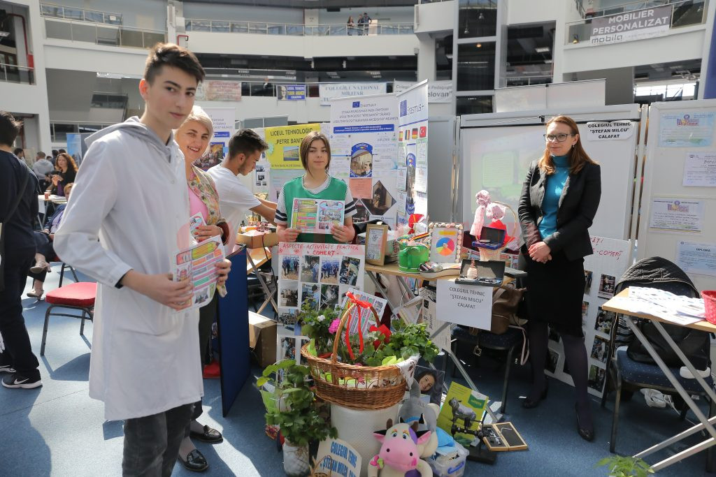 Alături a fost expusă oferta Liceului „Ştefan Milcu“ din Calafat, cu un coş cu flori, dar şi cu produse tradiţionale pentru această perioadă. „Suntem un liceu cu profil agricol. Avem trei clase la învăţământ liceal. Noutatea pentru admiterea din acest an este clasa de învăţământ profesional cu dublă specializare, tehnician culturi de câmp şi tehnician zootehnist. Am înfiinţat aceste specializări pentru că avem în zonă agenţi economici de profil la care elevii pot face practică“, a precizat Aurelia Mihăilescu, profesor în cadrul Liceului „Ştefan Milcu“ Calafat.