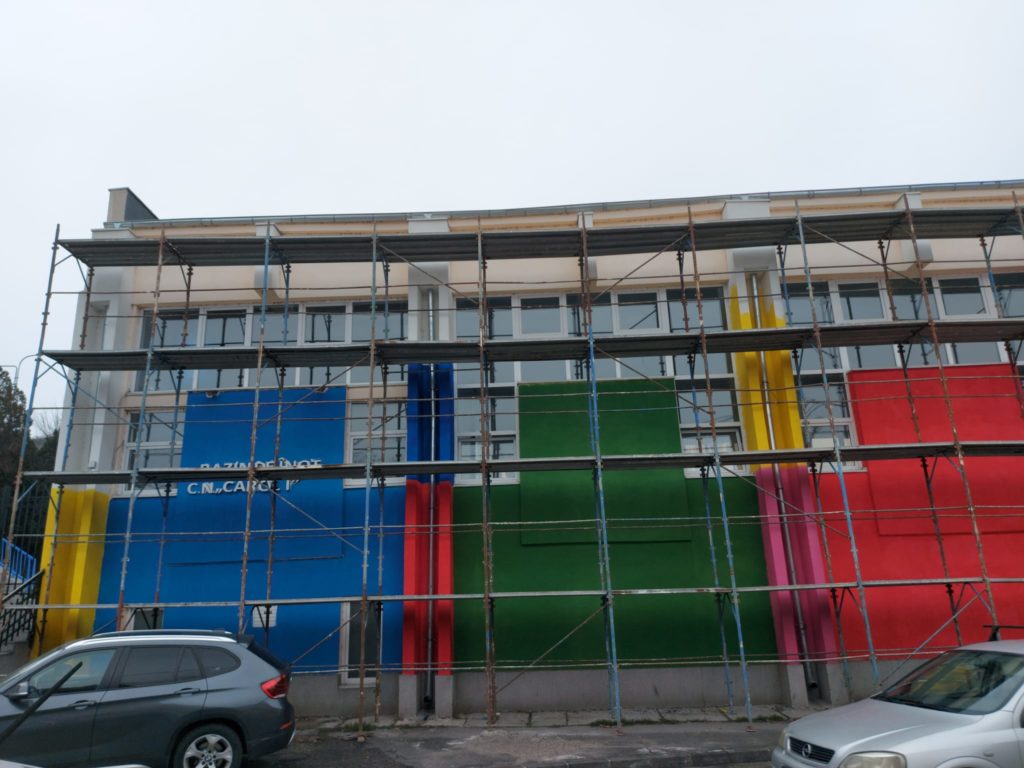 Bazinul de înot de la Colegiul Naţional „Carol I” a beneficiat de lucrări de investiţii şi modernizare. A fost inaugurat în ianuarie 2020, dar închis la scurt timp. Zilele trecute a început însă vopsirea unui perete stradal al clădirii în foarte multe culori, respectiv roz, roşu, galben, verde, albastru.