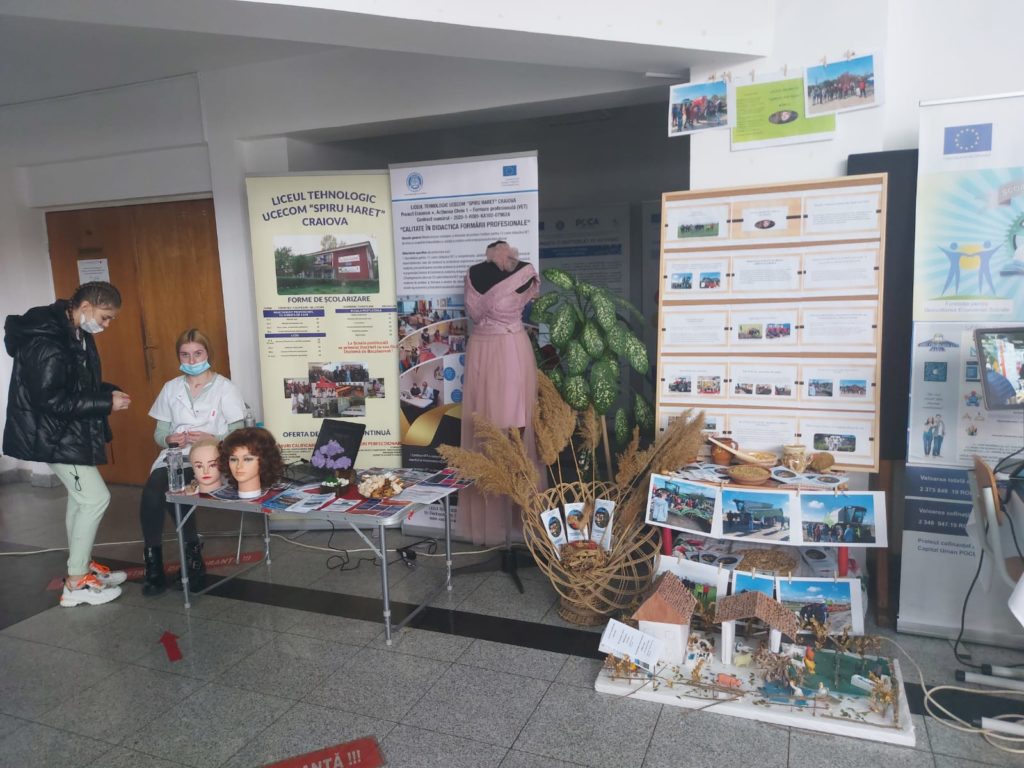 La intrarea în Inspectoratul Şcolar Judeţean Dolj au fost amplasate. ieri, standuri pe care sunt expuse circuite electrice, solarii, tâmplărie PVC, diferite instalaţii, coafuri, haine şi chiar produse de patiserie. Obiectele expuse reprezintă de fapt oferta educaţională a liceelor tehnologice din Dolj.
