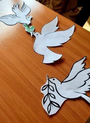 Elevii unor unităţi şcolare din Craiova au hotărât să transmită un altfel de mesaj de pace şi de susţinere a Ucrainei. La Liceul „Energetic” Craiova, gardul este împânzit de porumbei ai păcii, decupaţi din hârtie, iar la intrarea în curtea unităţii a fost afişat steagul Ucrainei. La Liceul Tehnologic „George Bibescu”, pe fiecare fereastră a fost lipit un porumbel.