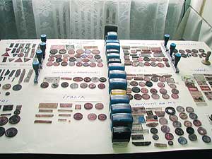 • Politistii de la crima organizata au descoperit stampilele si documentele false intr-o borseta, in baia apartamentului familiei Horescu • Inscrisurile de pe cele aproape 300 de stampile apartineau unor facultati din Craiova, unor ministere, vami, notari publici, medici, dar si unor institutii straine • Printre falsuri au fost descoperite inclusiv stampila Inspectoratului Judetean de Politie Dolj, cea a cabinetului primului ministru, a Ambasadei Elvetiei din Bucuresti si a Chesturii din Roma • Lucratorii Centrului Zonal pentru Combaterea Crimei Organizate au gasit inclusiv documente pe care erau aplicate respectivele „amprente“, carti de munca, diplome de licenta si de bacalaureat • Falsificatorii foloseau si mulaje din material dentar pentru aplicarea timbrului sec pe respectivele diplome