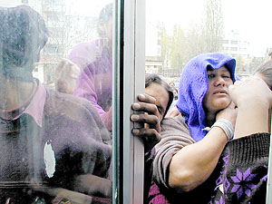 800 de persoane au luat ieri cu asalt biroul Asistentei Sociale din cartierul Lapus. In jurul orei 12.00, casieriile s-au deschis, urmind sa inceapa achitarea platilor pe lunile ianuarie si februarie, potrivit Legii 14/6 a venitului minim garantat. In cel mai scurt timp, sute de oameni au blocat ambele intrari, calcindu-se in picioare si izbind cu pumnii in usi. Femeile, in majoritate de etnie roma, urlau, dindu-si una alteia copiii, crezind ca asa vor putea trece de gardienii postati in fata intrarii. Vazindu-se in imposibilitatea de a calma multimea, functionarii Asistentei Sociale au cerut intariri. In jurul orei 14.00, au sosit un microbuz al Corpului Gardienilor Publici, o masina a Sectiei 3 jandarmerie si doi politisti.