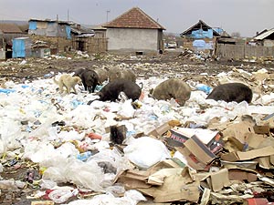 Dincolo de „pitorescul“ locului, acolo este o problema foarte grava. Lasind la o parte sanatatea celor care traiesc in mijlocul gunoaielor, este vorba de sanatatea craiovenilor. Din acel focar de infectie ajung pe mesele multor familii carne sau alte produse de carmangerie. Nimeni nu pune problema pericolului pe care-l reprezinta bolile infectioase pe care le pot purta si transmite acei porci, crescuti in conditii care sint departe de cele impuse prin normele sanitar-veterinare. Situatia este cunoscuta la nivelul conducerii primariei craiovene si chiar a prefecturii. Gurile rele spun ca, de fapt, o parte din porci ar apartine edililor orasului. Cert este ca nimeni nu a luat nici o masura in privinta rampei de gunoi. Tot de acolo, tiganii aduna haine, le spala – zic ei – dupa care le vind in tirgul craiovean, de unde sint cumparate la pret de chilipir.