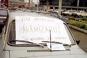 Ieri dupa-amiaza , la una dintre plecarile prefectului Marin Diaconescu din sediu a avut loc o scurta discutie intre prefect si grevisti. In urma acestui schimb de cuvinte, grevistii au inceput sa scoata benzina din rezervoarele celor doua autoturisme in care se odihnesc. Cristian Fana, viceliderul sindicatului „Adevar si Dreptate“, a declarat ca prefectul i-a amenintat cu evacuarea: „Daca vin jandarmii sa ne evacueze, oamenii isi vor da foc“.