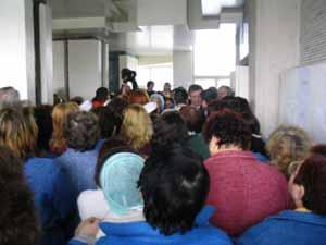 Protestul a inceput la ora 10.00, asistentilor medicali si infirmierelor adaugindu-li-se si personalul administrativ al spitalului, precum si citiva medici. Nemultumirile angajatilor au fost determinate de neacordarea in luna ianuarie a tichetelor de masa prevazute prin lege, dar si – potrivit liderilor de sindicat – ignorarii acestei probleme de catre conducerea spitalului. „Oamenii sint indreptatiti sa protesteze, pentru ca inca din 14 ianuarie ar fi trebuit sa primeasca tichetele de masa. Am luat atunci legatura cu directorul spitalului si ni s-a promis ca se vor lua masuri, dar nu s-a facut nimic. Conducerea spitalului ne-a spus ca a facut, la rindul ei, demersuri, dar nu este adevarat. Abia acum, sub presiunea maselor, au promis ca vor lua la rindul lor legatura cu ministerul“, a declarat Ion Cotojman, presedintele Sindicatului SANITAS al Spitalului de Urgenta Craiova.