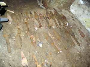 Pirotehnistii doljeni au dezgropat ieri, din subsolul unei cladiri aflate in centrul Craiovei, 27 de proiectile antitanc datind din cel de-al doilea razboi mondial.