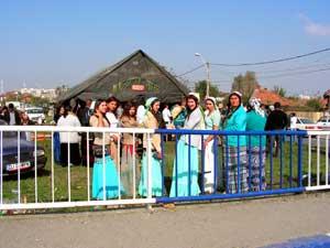 Neamurile de romi din Catargiu s-au strins ieri, inca din zori, la locul stabilit: intersectia strazii Riului cu Gheorghe Chitu, chiar in vecinatatea Spitalului de Urgenta. Pina la prinz, peste 200 de nuntasi etnici au umplut scuarul dintre cele doua benzi de circulatie. Pirande invesmintate in tolul sclipitor cel mai cret si impodobite cu toti galbenii din dotare, bulibase de cartier la costum si puradei despuiati, toti au incins chef in plina zi de miercuri si in plin domeniu public. Desi nici soferii, nici pietonii, nu au trecut nepasatori pe linga spectacolul oferit de comunitatea minoritara, nimeni nu a sesizat vreo incalcare a legii ori macar a bunului-simt de viitor cetatean european: maneaua a continuat sa zbiere asurzitor pina la ultimul nivel al Spitalului de Urgenta, nuntasii au incins domeniul public cu dansuri traditionale, iar craiovenii au intepenit pe marginea drumului, admirind spectacolul.