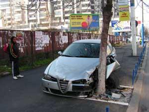 Un tânar a intrat cu masina pe un trotuar din Craiova si s-a oprit intr-un pom, dupa ce alt conducator auto i-a taiat calea. Cornel Lupu, de 23 de ani, se deplasa, in noaptea de luni spre marti, la volanul autoturismului sau marca Alfa Romeo, pe Calea Bucuresti, dinspre Universitate catre McDonald’s. La intersectia cu strada Fratii Golesti, lui Cornel i-a aparut in fata un Espero condus de Ion Codoba, de 37 de ani, care a virat la stânga, taindu-i calea. Chiar daca Lupu a tras de volan spre dreapta ca sa evite tamponarea, l-a „sters“ pe Codoba, dupa care a intrat pe trotuar, a mai rulat câteva zeci de metri, apoi s-a izbit violent de un copac. Politistii sositi la fata locului au stabilit ca vinovat de producerea accidentului este Ion Codoba, care nu a acordat prioritate de trecere, retinându-i acestuia permisul.