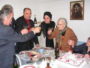 Nu a durat mai mult de cinci minute. Abia daca a avut timp batrâna centenara sa se dumireasca de ce se intâmpla in jur. Intre copii, nepoti, stra, strastranepoti agitati si mai emotionati decât ea, cu camere video si foto, cu platouri si pahare aduse in graba, cu ziaristi ingramadindu-se sa imortalizeze mult laudatul moment, Antonie Solomon a pasit in sufrageria familiei Diaconescu. Evident emotionat, i-a sarutat mâna batrânei. Acesta a fost cadoul lui Antonie Solomon. Un buchet de flori, un tort, doua sticle de sampanie si un plic valorând zece milioane de lei – acestea au fost darurile primarului Craiovei, un omagiu adus singurei centenare a orasului, Polina Diaconescu.