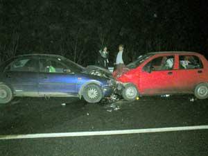 Trei persoane au ajuns la Spitalul Judetean din Drobeta Turnu Severin, dupa ce autoturismul Matiz in care se aflau a fost lovit frontal de un Ford inmatriculat in Austria.